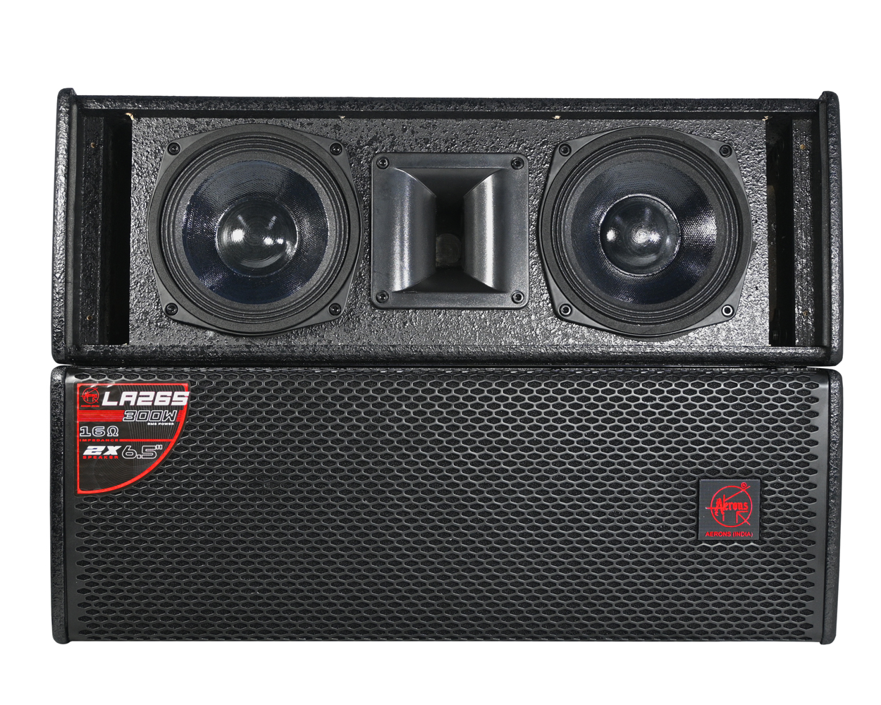 The LA265 is a versatile dual 6.5-inch passive line array speaker designed for professional sound reinforcement in various live and installation applications. It combines compact size with powerful audio performance, delivering crisp highs and solid lows. Its advanced neodymium compression driver and 6.5-inch
